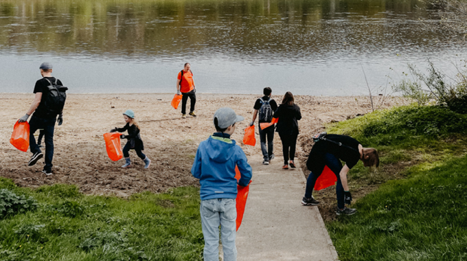 Working together for a clean environment: the team at the big Elbe meadow clean-up in Dresden