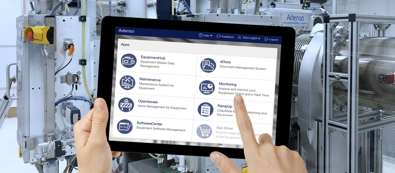 Kontron AIS GmbH has developed a software platform based on ToolCommander® to control three different newly developed wafer handling robots (WHR) from Adenso Industrial Services GmbH. This was seen as an opportunity to establish digital system monitoring and management: the cloud-based customer platform Adenso.ToolCloud, based on the digital transformation solution EquipmentCloud®, was implemented. This software is based on an Oracle Cloud Infrastructure.