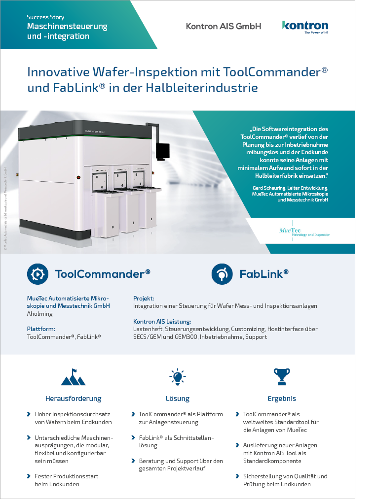 MueTec suchte einen europaweit agierenden Partner für das Steuerungs-Know-how ihrer Maschinen, der zudem flexibel und zeitnah Wünsche umsetzen konnte. Als etablierter und erfahrener Sparringpartner in der Halbleiterindustrie war die Kontron AIS GmbH die ideale Wahl. Der gute Zusammenhalt von Halbleiter-Endkunden z. B. im Silicon Saxony ermöglichte über Empfehlung dann die Partnerschaft von MueTec und Kontron AIS.